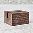 Walnotenhouten mini kaartenhouder (34x30x20 mm) met hardwax afwerking. Perfect voor visitekaartjes, prijsetiketten en personalisatie! Lees meer.
