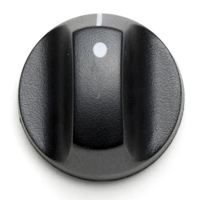 Betrouwbaar bedienen begint bij een knop die stevig aanvoelt. Deze bedieningsknop heeft een solide, ronde vorm en is uitgevoerd in zwart. Bovenop zit een duidelijke markering, zodat je de stand snel kunt herkennen. De twee verhoogde gripvlakken aan de bovenzijde helpen je om de knop prettig vast te pakken en gecontroleerd te draaien, ook wanneer je handen wat vet of vochtig zijn van het koken.