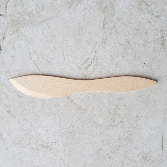 Smeer boter, kruidenboter en zachte spreads zonder geknoei met een licht houten mesje dat prettig in de hand ligt. Dit Calyx botermesje is gemaakt van beukenhout en heeft een slanke, licht gebogen vorm. Daardoor smeer je makkelijk op brood, crackers of een beschuitje, zonder dat je meteen naar metaal hoeft te grijpen. Het natuurlijke hout oogt rustig op tafel en past perfect bij een ontbijtplank, borrelmoment of een gezellige brunch.