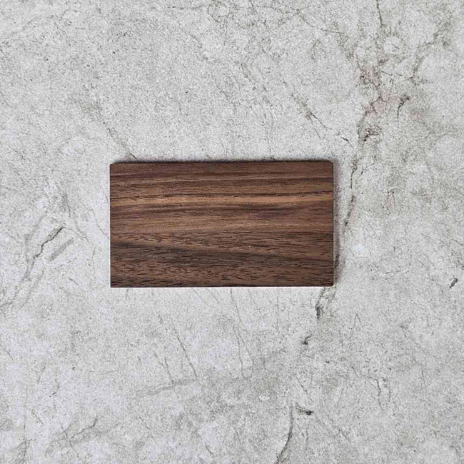 Canto houten visitekaart of gift card van Amerikaans walnoot 90 x 50 x 2,7 mm met hard wax. Laat lasergraveren als visitekaart of corporate gift met kortingscode. Lees meer.