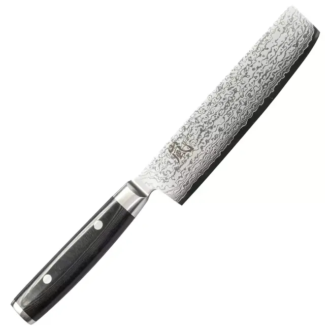 Yaxell, Japans groentemes, Ran serie, Nakiri mes, VG10 staal, 69 lagen damaststaal, 16,5 cm lemmet, Canvas-Micarta handvat, professioneel keukenmes, groentesnijder, handgesmeed, ergonomisch handvat.