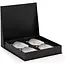 De Anovi Amuse Schelpen worden aangeboden in een set van vier, elk met afmetingen van 10 cm x 10 cm. Ze zijn verpakt in een luxe zwarte doos, compleet met een certificaat van echtheid. Deze schelpen zijn niet alleen een feest voor het oog, maar ook een perfecte manier om uw culinaire creaties op een elegante wijze te presenteren.