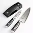 De messen in deze set zijn vervaardigd uit 69 lagen roestvrij damaststaal met een kern van VG-10 staal. Dit zorgt voor een uitzonderlijke scherpte en een lange levensduur. Met een hardheid van 61 HRC op de Rockwell-schaal zijn deze messen ontworpen om de tand des tijds te doorstaan. Het prachtige damastpatroon op het lemmet maakt de messen niet alleen functioneel, maar ook een lust voor het oog. De handvatten zijn gemaakt van duurzaam Canvas-Micarta, wat zowel comfortabel als hygiënisch is.