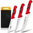 Professionele EIKASO messenset in rood, 3-delig met ijsgehard staal en antisliphandvat – voor slagerij, horeca of thuis. Lees meer.
