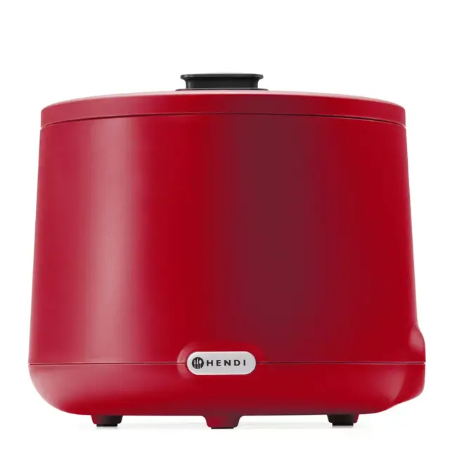 Hendi soepketel UNIQ, soepketel UNIQ rood, rode soepketel, soepketel 8 liter, warmhoudketel 8 liter, elektrische soepketel, soep warmer horeca, soepketel buffet, soepketel catering, warmhouden soep, warmhouden stoofschotel, warmhouden chili, UNIQ collectie, Robert Bronwasser ontwerp, digitale soepketel, soepketel met display, temperatuur instelbaar 35 tot 85 °C, temperatuur instelbaar per 1 °C, soepketel thermische beveiliging, bescherming tegen oververhitting, soepketel roestvast staal 18/8, verwijderbare soepcontainer, deksel gehard glas, lepeluitsparing deksel, kaarthouder naamkaarten, tweedelig deksel, horeca warmhoudapparaat, restaurant buffet apparatuur, hotel buffet apparatuur, catering warmhoudapparatuur, soepketel 500 W, soepketel 220-240 V, soepketel niet vaatwasserbestendig