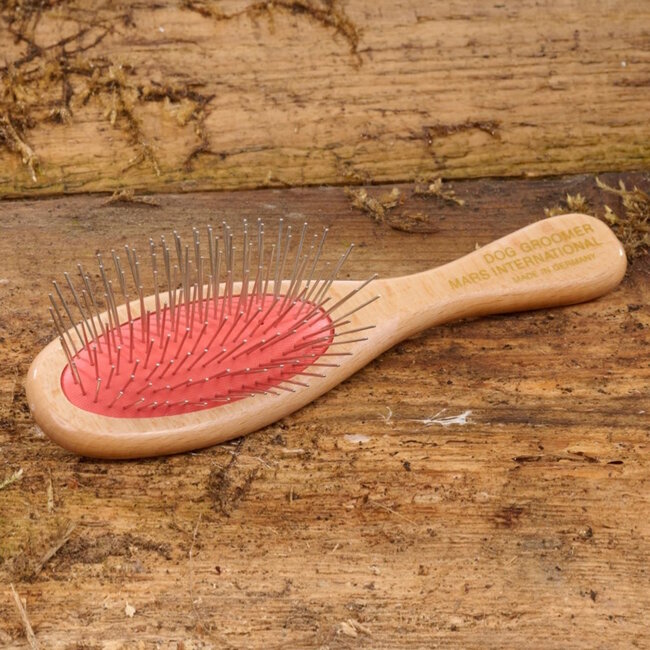 Geef je huisdier de verzorging die het verdient met de Mars Coat-King Solingen Professionele Verzorgingsborstel. Deze borstel, met zijn roestvrije pinnen en ergonomisch houten handvat, staat garant voor een zachte maar effectieve verzorging van de vacht. Geschikt voor zowel honden als katten, maakt deze borstel het verzorgen van je geliefde viervoeter een stuk aangenamer.