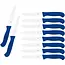 De messen zijn uitgerust met een extra fijne kartel en een scherp lemmet van 10,5 cm, waardoor je met gemak en precisie kunt snijden. Het blauwe kunststof handvat zorgt voor een comfortabele grip en voegt een vrolijke tint toe aan je keuken. Dankzij het ergonomische ontwerp ligt het mes stevig in de hand, wat zorgt voor een veilige en aangename snijervaring.