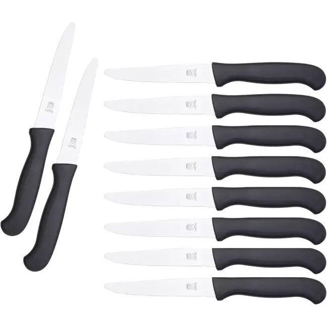 RÖR Solingen Tafelmes, Zwart Kunststof, 10 stuks, Ontbijtmes, Lunchmes, Solingen Mes, Vaatwasmachinebestendig, Universeel Mes, Extra Fijne Kartel, Roestvrij Mes, Lemmet 10.5 cm, Mes 21.5 cm.