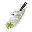 Dankzij de drie verwisselbare messen kun je kiezen uit verschillende snijdiktes: 1 mm voor fijne garnituren, 2 mm voor alledaags snijwerk, en 3.5 mm voor dikkere stukken. Deze messen zijn gemaakt van hoogwaardig roestvrijstaal, wat zorgt voor een lange levensduur en constante scherpte. Het verwisselen van de messen is een fluitje van een cent dankzij het intuïtieve wisselmechanisme.