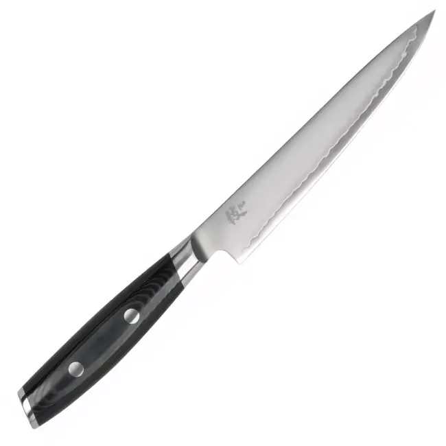 Yaxell Mon vleessnijmes 150 mm: VG10-kern (HRC61), Japans 3-laags lemmet en canvas micarta handvat. Snijdt moeiteloos dun, blijvend vlijmscherp. Lees meer.
